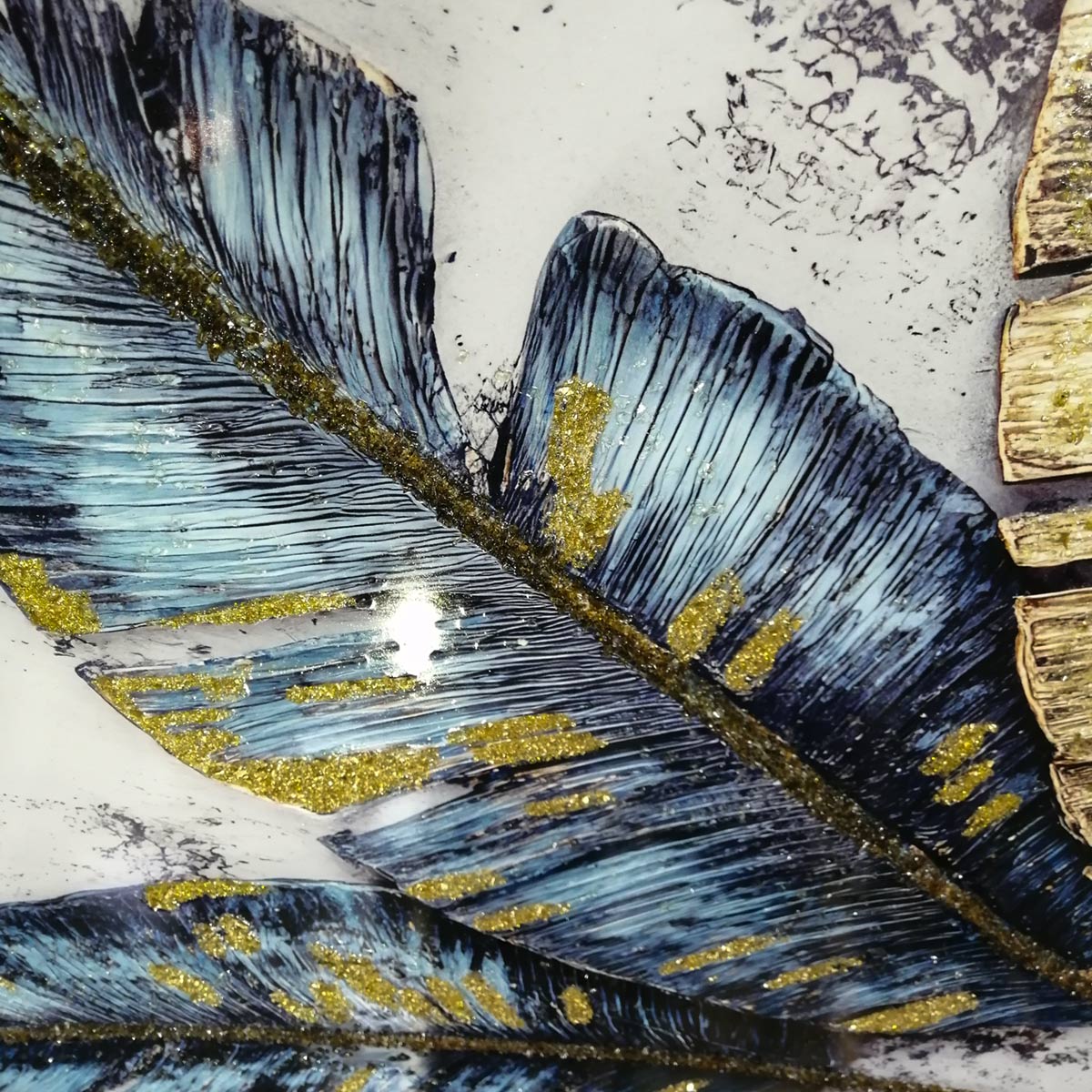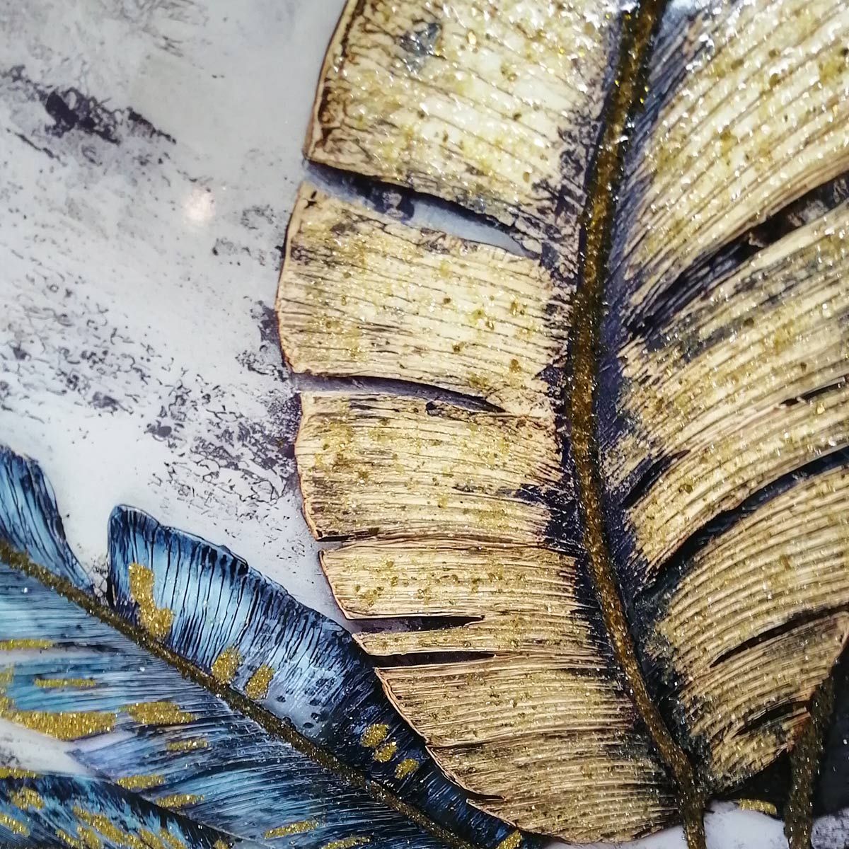 تابلو شاین تکسچر و رزین مدل برگ (دست‌ساز) کد 012
